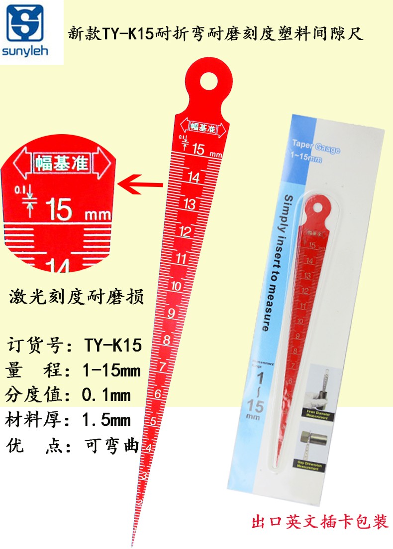 可折弯激光刻度塑料楔形塞尺TY-K15