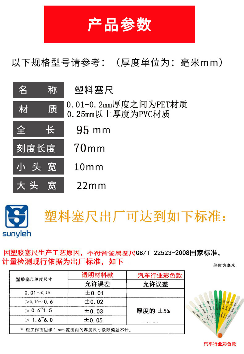 sunyleh滕艺塑料塞尺/塑胶厚薄规3608系列